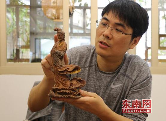 林建軍創作的錢四娘雕像模型 現在,林建軍正在創作另外一件和木蘭溪治理題材有關的作品,他要創作一尊錢四娘木雕像。這尊雕像的身高將被設定為1.6米,以此向這個在16歲時便變賣家產帶頭到莆田攔溪筑壩、造福當地百姓的少女致敬。在作品的選材上,林建軍則瞄準了莆田本地的龍眼木。“以前,大家的生活比較窮困,很多家庭甚至就靠一棵龍眼樹的收成過生活,可以說龍眼樹也哺育了莆田人民,這也是艱苦耐勞、堅韌不拔的莆田人民的一種精神寫照。”林建軍說。 “藝術只有來源于人民、服務于人民才有價值,好的作品應該留下時代烙印,才具有生命力。木蘭溪題材作品的創作以后應該會越來越多。”林建軍說,他將用手中的刻刀,不斷創造出富有感染力的作品,講好莆田故事、謳歌家鄉風情。 |