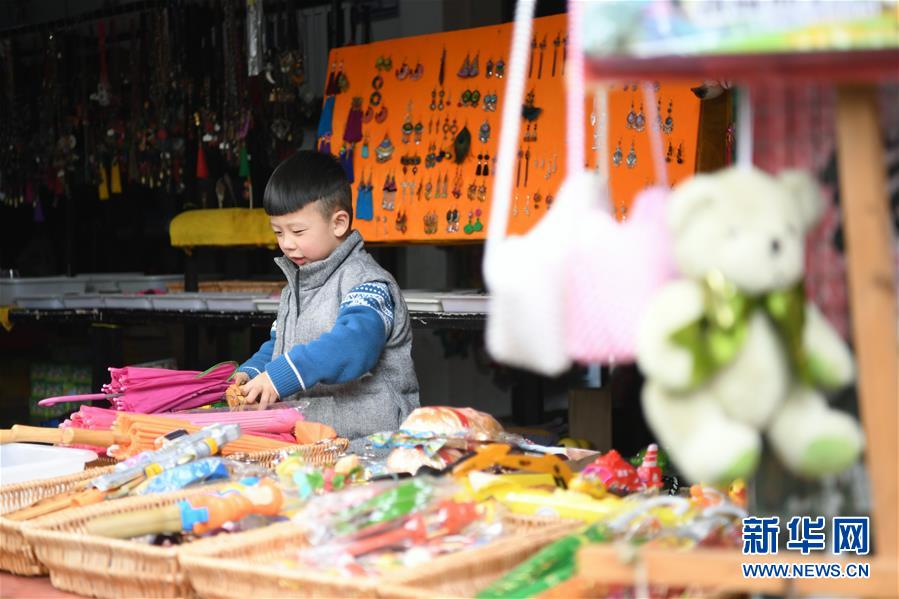 3月12日,小朋友在濯水古鎮景區內一處小攤前挑選玩具。 近日,位于重慶黔江區的國家4A級旅游景區濯水古鎮逐步恢復開放,當地政府在景區內設置了多處體溫監測點,切實保障游客安全。 新華社記者 唐奕 攝