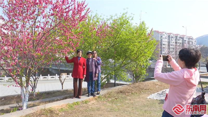 碧桃花競相開放令觀賞者流連忘返。黃功興 攝