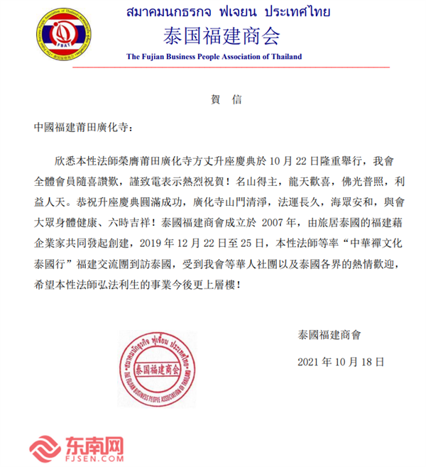日本福建經(jīng)濟(jì)文化促進(jìn)會(huì)賀信